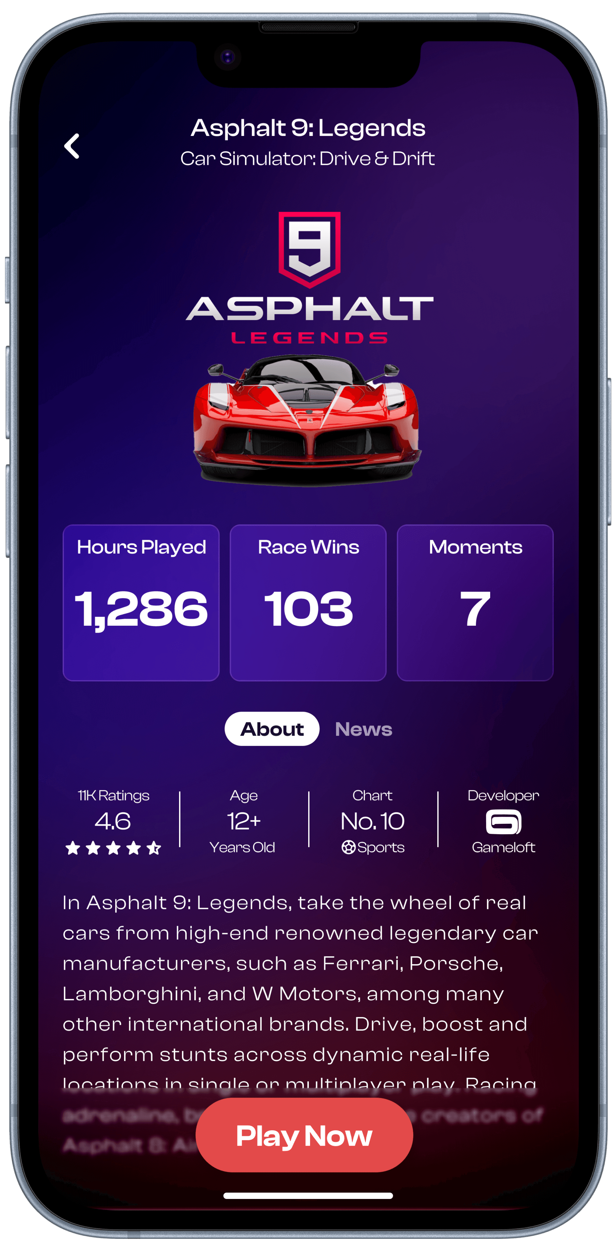 A mobile-first gaming hub designed to centralize game discovery, personal stats, social features and video content into one seamless, immersive experience.